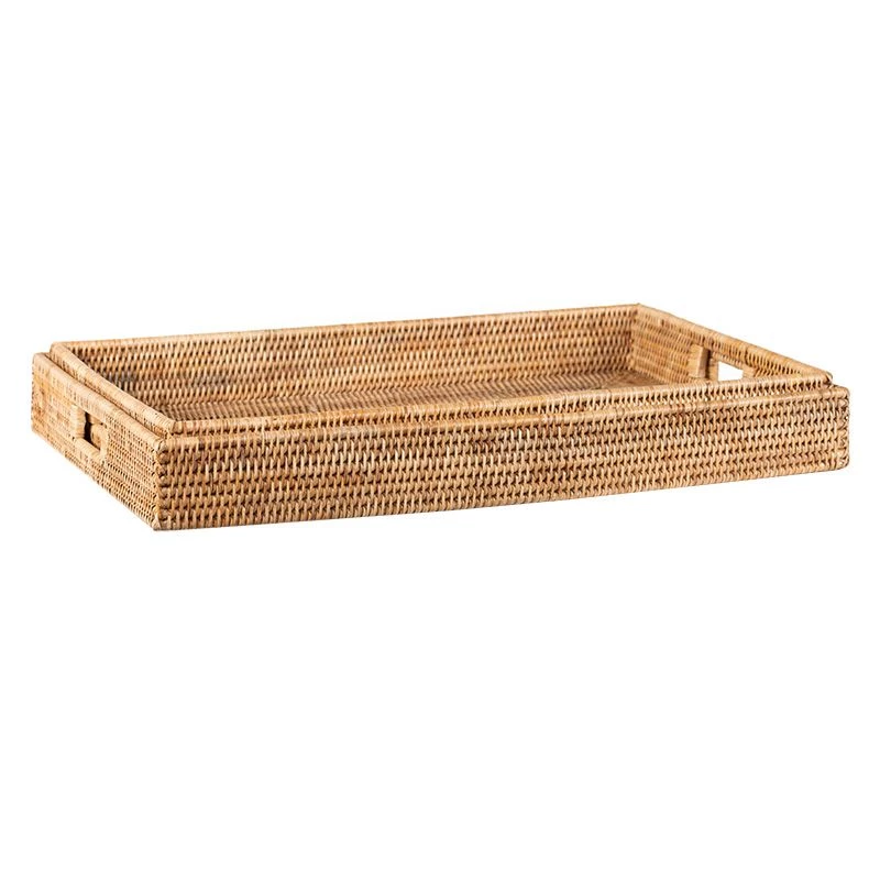 Payaa Dienblad Het Payaa Dienblad is perfect om een vleugje klassieke stijl toe te voegen aan je interieur. Met zijn rechthoekige vorm en bruine kleur past dit dienblad moeiteloos in elke ruimte. Gemaakt van hoogwaardig rotan materiaal, is dit dienblad zowel duurzaam als stijlvol. Met een afmeting van 64x67x7cm is dit dienblad ruim genoeg om al je benodigdheden te dragen. Of je nu ontbijt op bed wilt serveren of je favoriete drankjes naar de woonkamer wilt brengen, dit dienblad biedt voldoende ruimte en is gemakkelijk te hanteren dankzij de 2 handvatten.