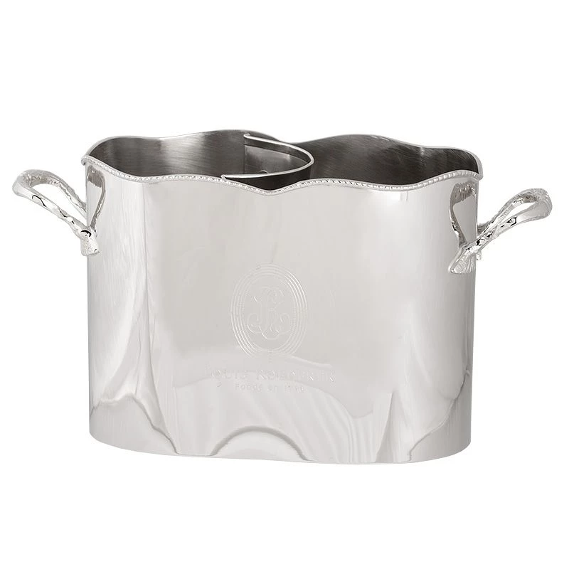 De Payaa wijnkoeler / champagnekoeler is een luxueus product met een stijlvolle uitstraling. Met een afmeting van 180x240x120 is deze wijnkoeler perfect voor het koel houden van één fles wijn. De zilveren kleur en de ets met het Roederer thema geven deze koeler een elegante uitstraling. Deze wijnkoeler is gemaakt van hoogwaardig messing materiaal en is voorzien van twee handvatten, waardoor hij gemakkelijk te verplaatsen is. Of je nu van een glas wijn geniet op een zomerse dag in de tuin of een feestje organiseert, deze wijnkoeler zorgt ervoor dat je drankjes altijd op de juiste temperatuur blijven.
