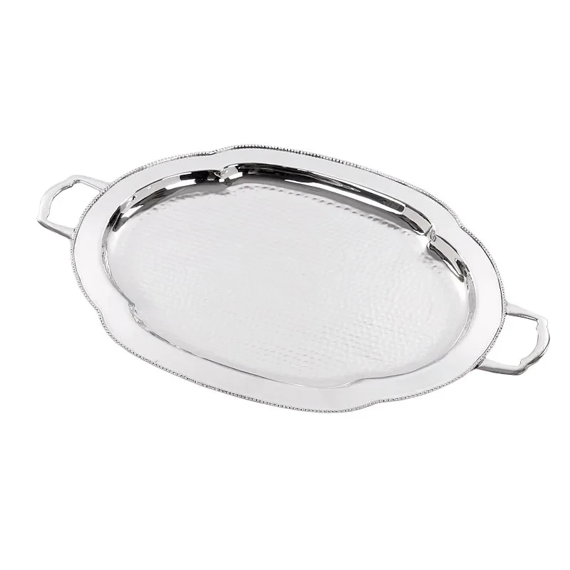 Met de eigenschappen Stijl Modern en Ets Geen etsen past dit dienblad perfect bij een eigentijdse inrichting. De kleur is zilver, wat zorgt voor een luxe uitstraling. Het materiaal is gemaakt van stevig metaal, waardoor het dienblad lang meegaat. Het dienblad heeft twee handvatten, waardoor het gemakkelijk te dragen en te verplaatsen is. Bovendien is dit dienblad verkrijgbaar voor de beste prijs! Daarnaast bieden wij snelle levering aan, zodat u snel kunt genieten van uw nieuwe aankoop. Als u liever het dienblad eerst wilt bekijken voordat u het aanschaft, is het mogelijk om het product op te halen in onze showroom. Zo kunt u zelf ervaren hoe mooi en praktisch dit dienblad is. Kortom, het ovale dienblad van Payaa combineert stijl, functionaliteit en een scherpe prijs, waardoor het een ideale keuze is voor elke gelegenheid.